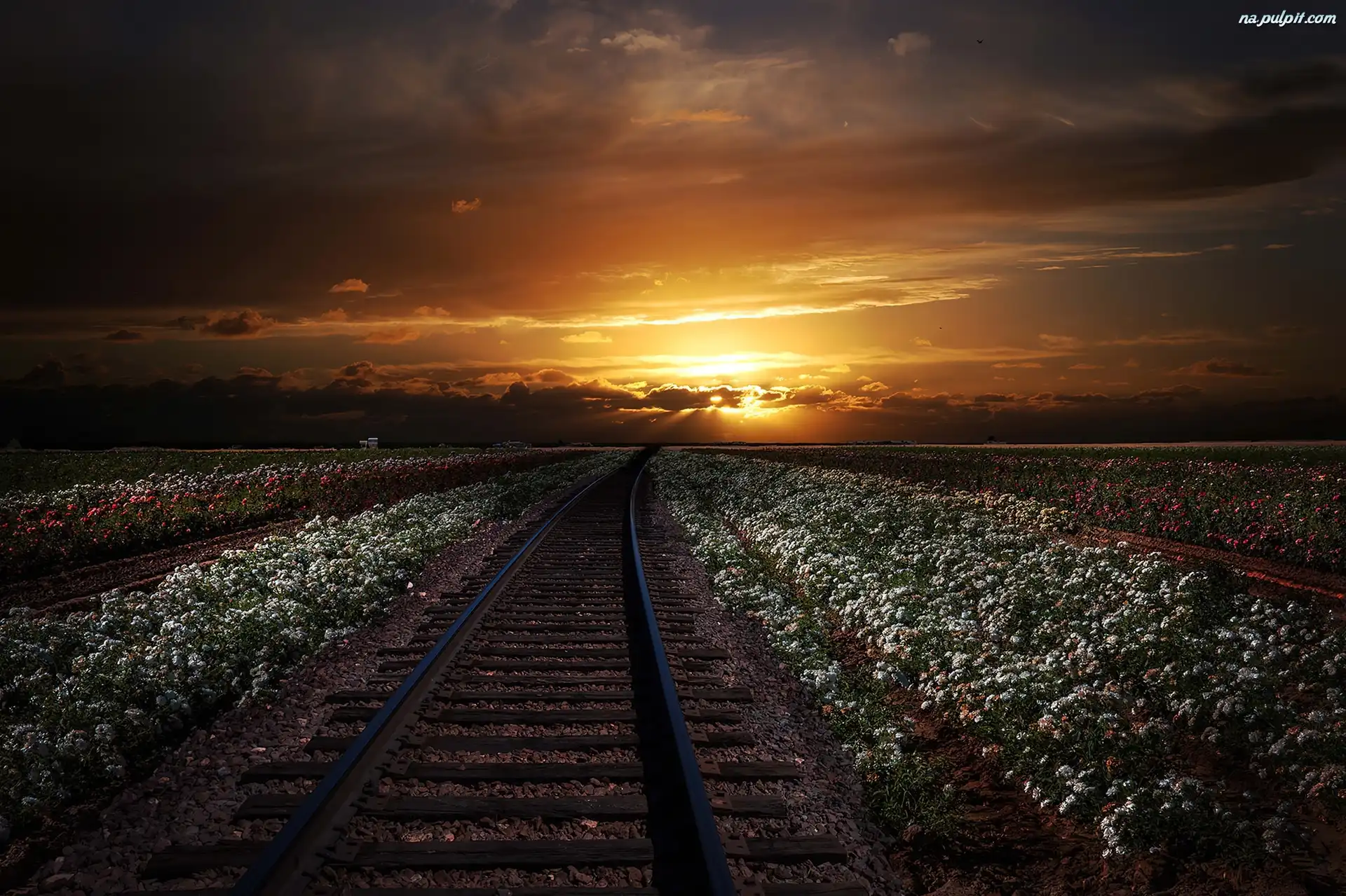 Kwiaty, Słońca, Zachód, Tory Na Pulpit