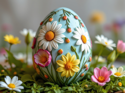 Białe, Pisanka, Żółte, Wielkanoc, Tulipany, Stokrotki, Niebieska, Kwiaty