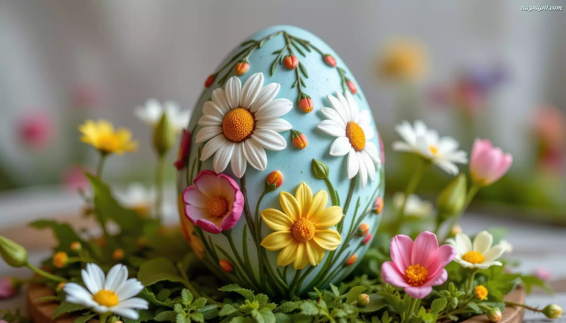 Białe, Pisanka, Żółte, Wielkanoc, Tulipany, Stokrotki, Niebieska, Kwiaty Na Pulpit