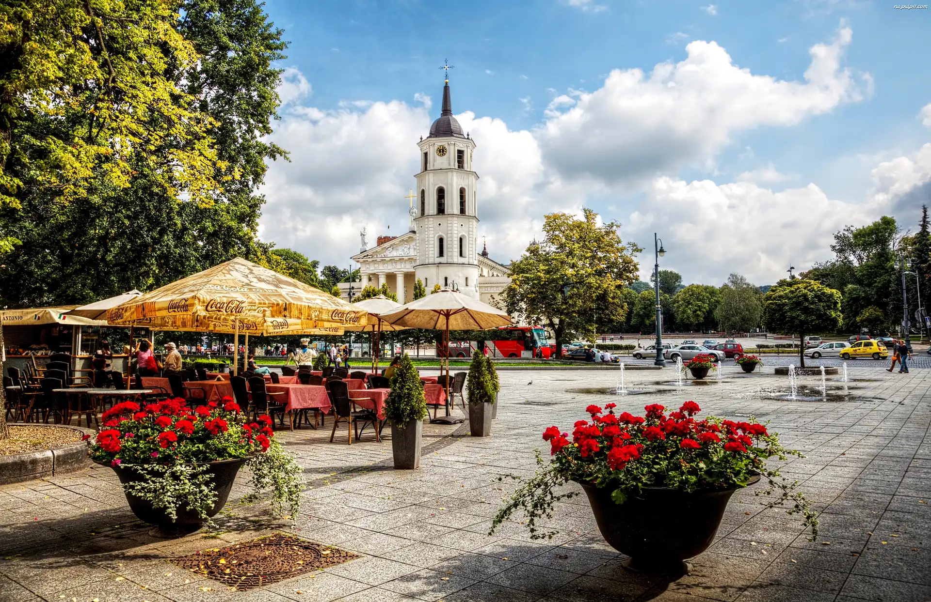 Kościół, Kwietniki, Z Pelargoniami, Restauracja, Wilno, Drzewa