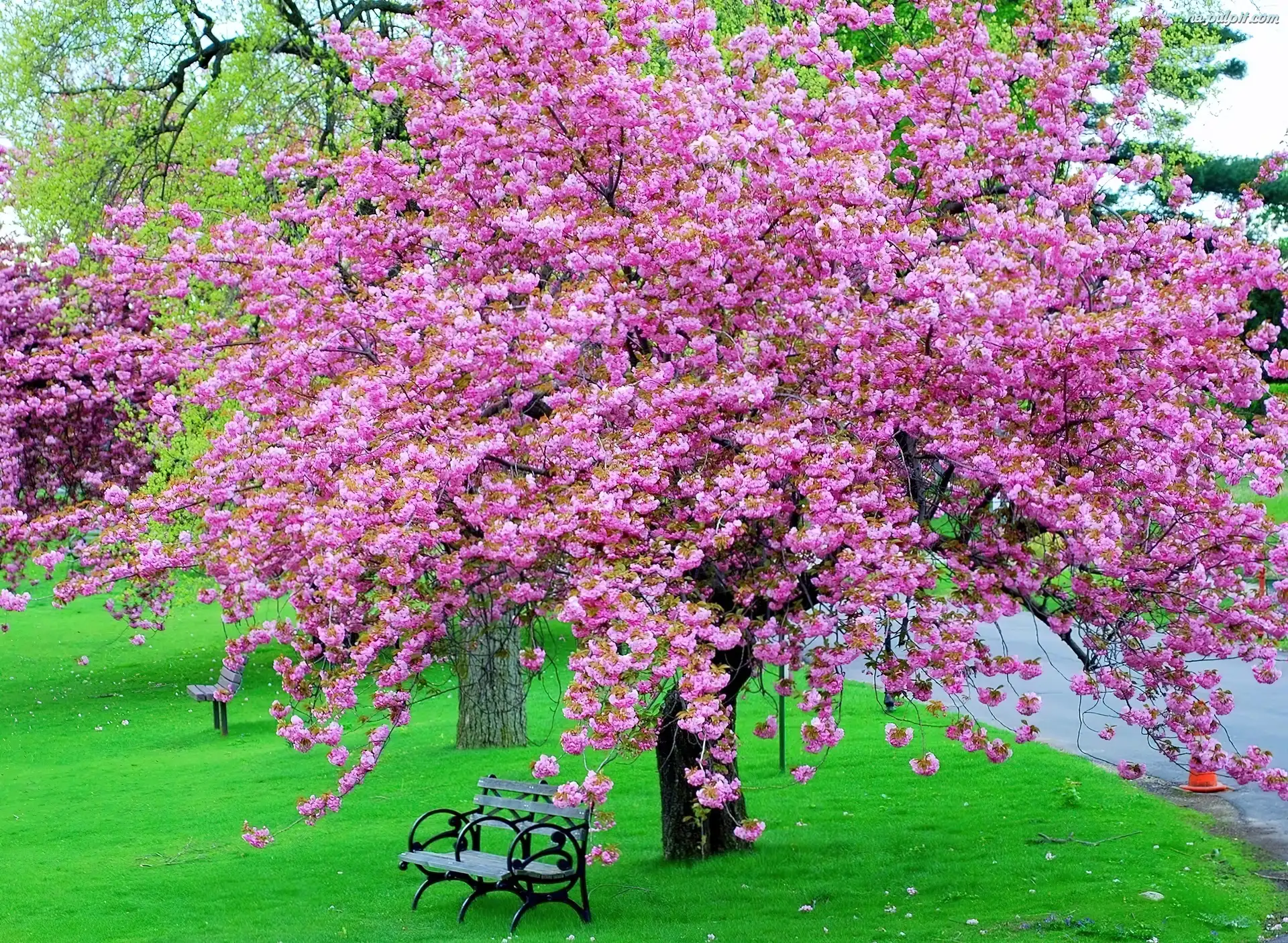 Ławka, Kwitnące, Drzewo Na Pulpit