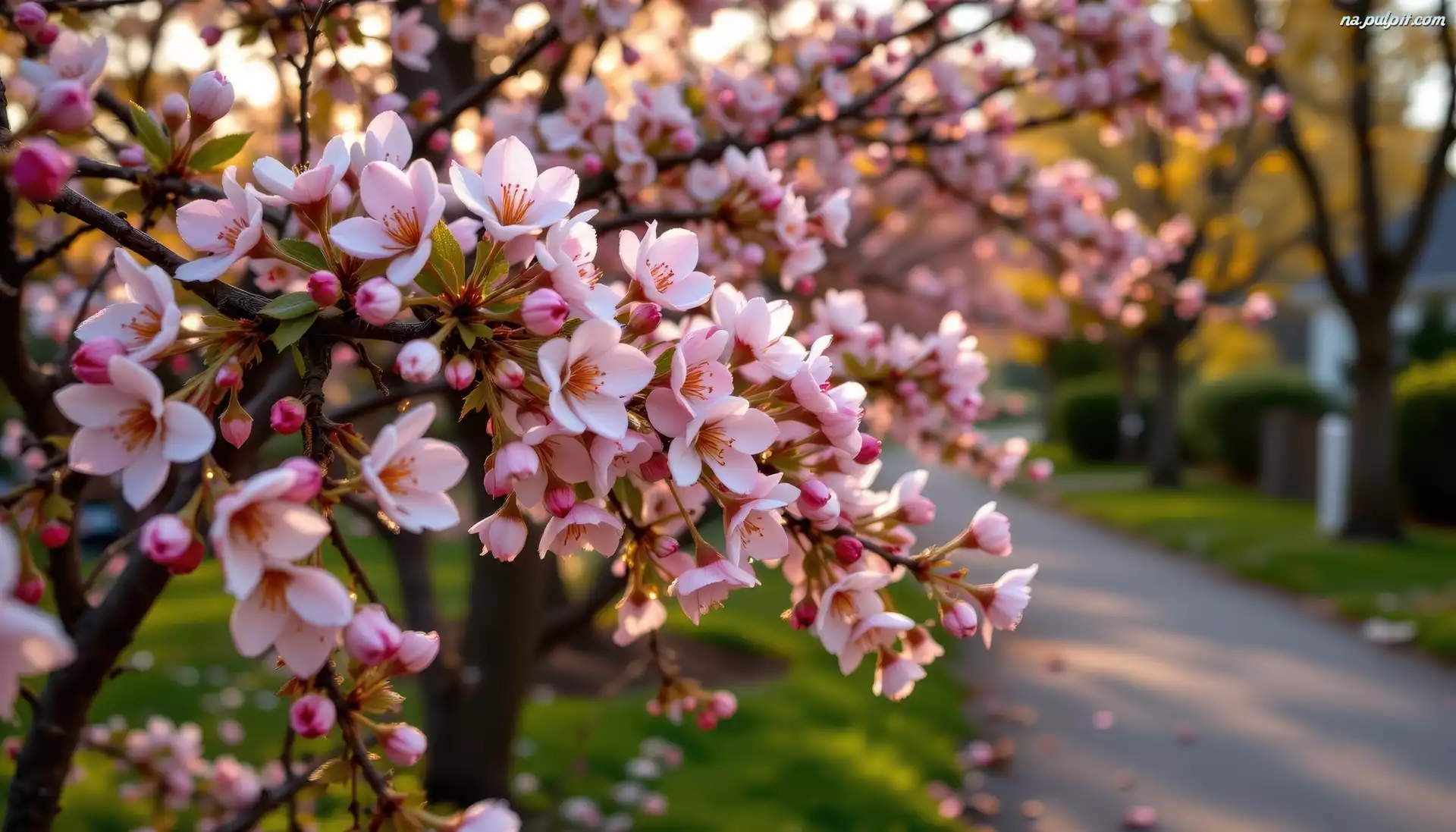 Kwiaty, Kwitnące, Gałązki, Droga, Różowe Na Pulpit