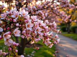 Kwiaty, Kwitnące, Gałązki, Droga, Różowe