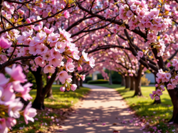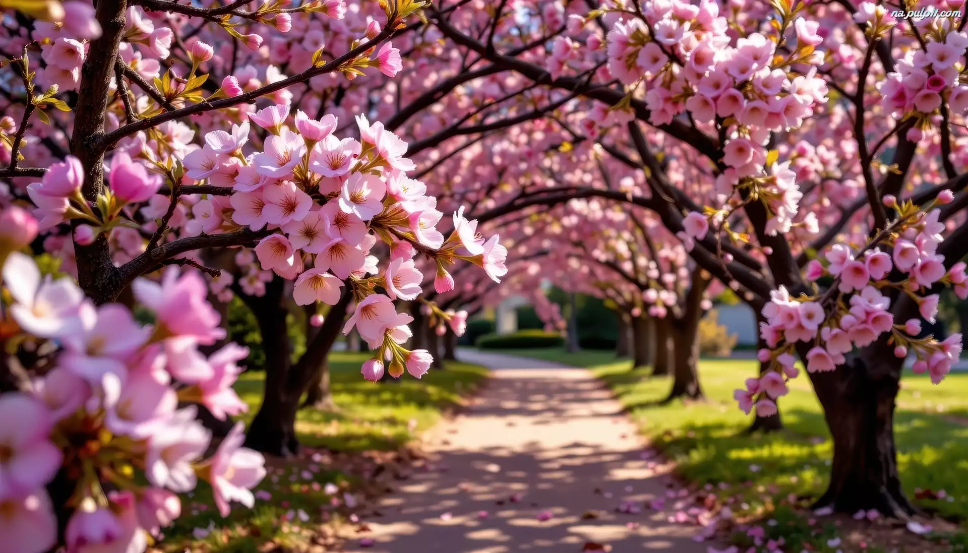 AI, Kwiaty, Różowe, Kwitnące, Drzewa, Gałązki, Droga