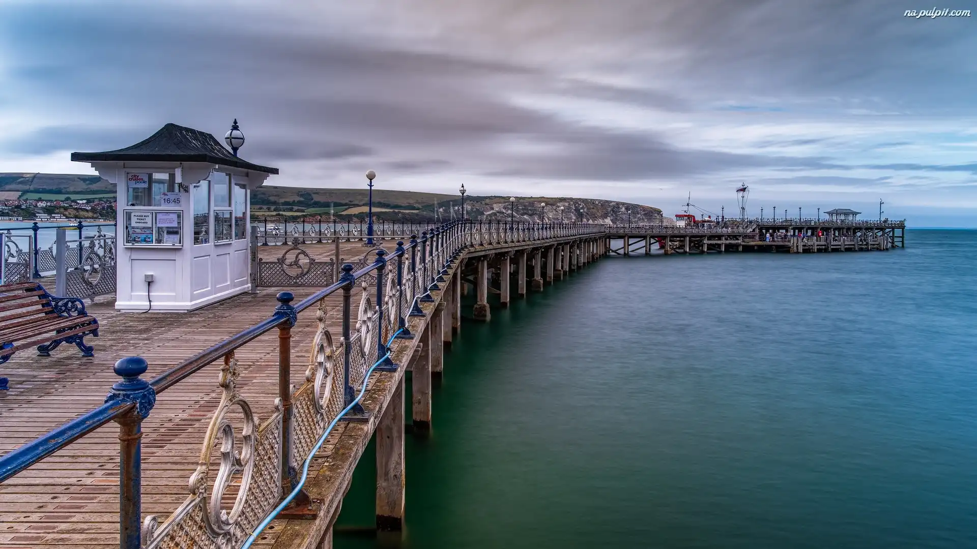 Anglia, Kanał La Manche, Hrabstwo Dorset, Chmury, Molo, Morze, Miejscowość Swanage