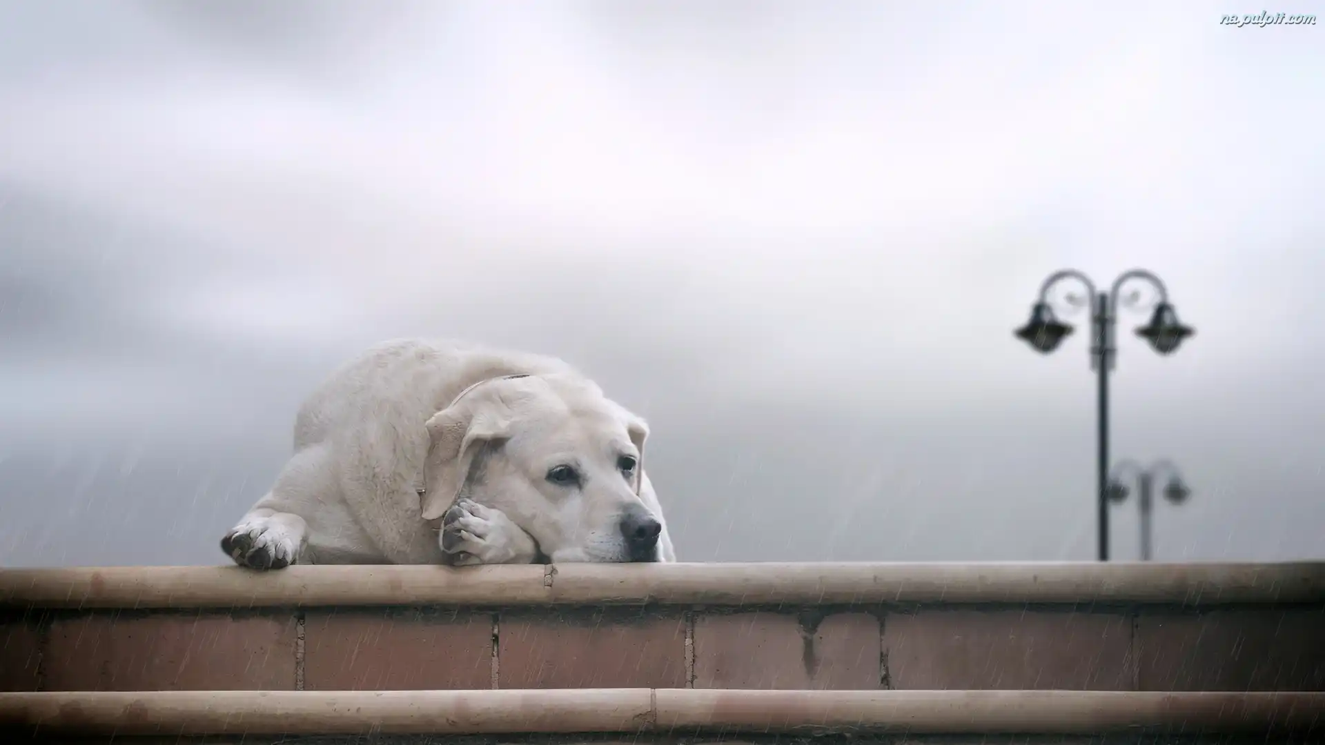 Labrador, Smutny, Deszcz, Schody, Pies Na Pulpit