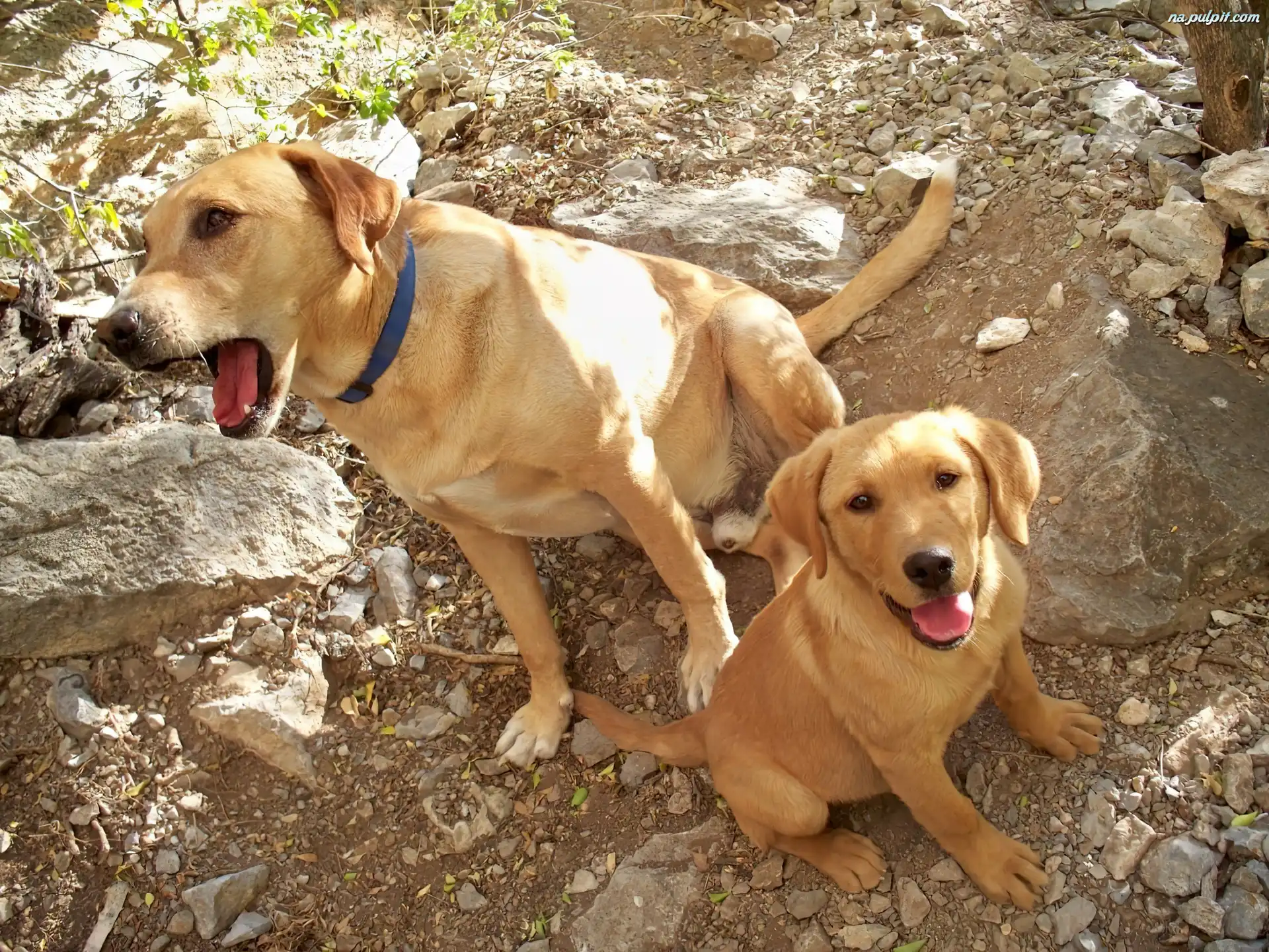 Labradory, Pieski, Rude, Dwa, Kamienie