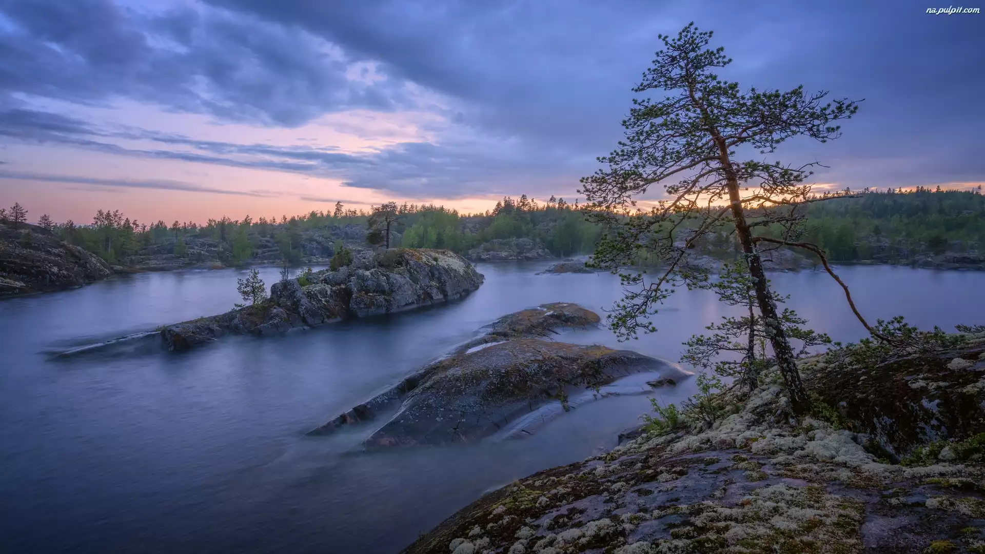Skały, Rosja, Jezioro, Ładoga, Karelia, Drzewa Na Pulpit