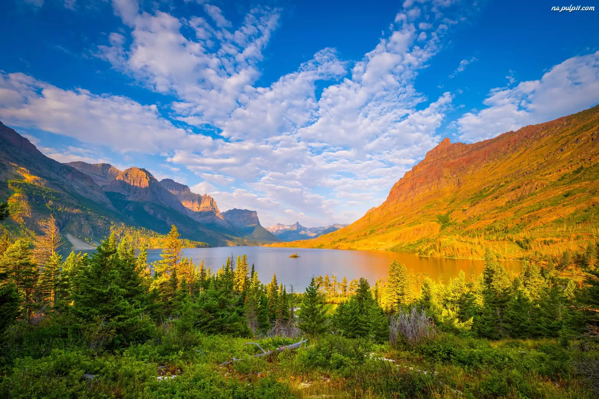Stan Montana, Jezioro, Góry, Park Narodowy Glacier, Saint Mary Lake, Stany Zjednoczone Na Pulpit