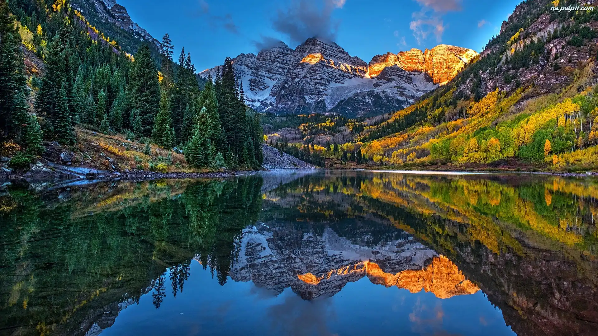Drzewa, Maroon Lake, Szczyty, Kolorado, Stany Zjednoczone, Maroon Bells, Jezioro, Góry Na Pulpit