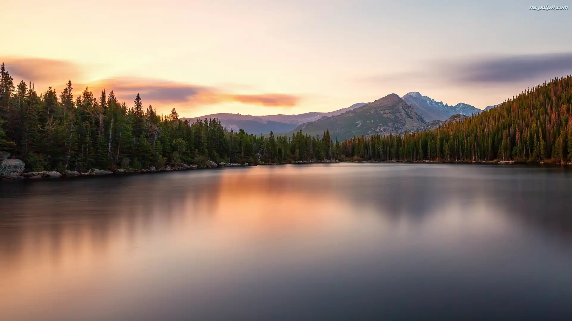 Stany Zjednoczone, Jezioro Bear Lake, Kolorado, Kamienie, Park Narodowy Gór Skalistych, Góry Skaliste, Drzewa Na Pulpit |
