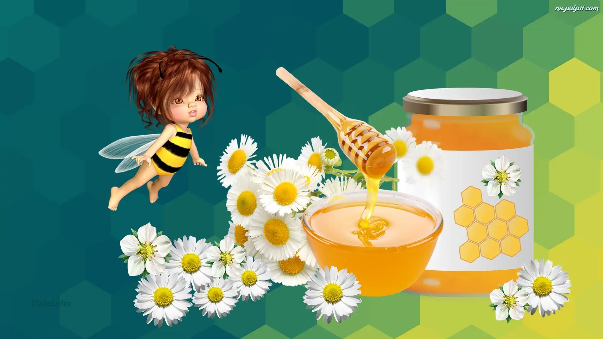 Laleczka, Miód, Grafika, Kwiaty