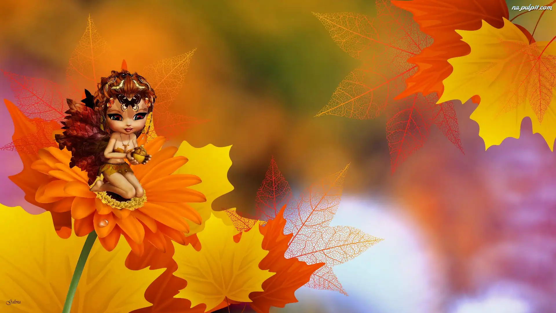 Laleczka, Kwiat, Liście, Jesień, Grafika Na Pulpit