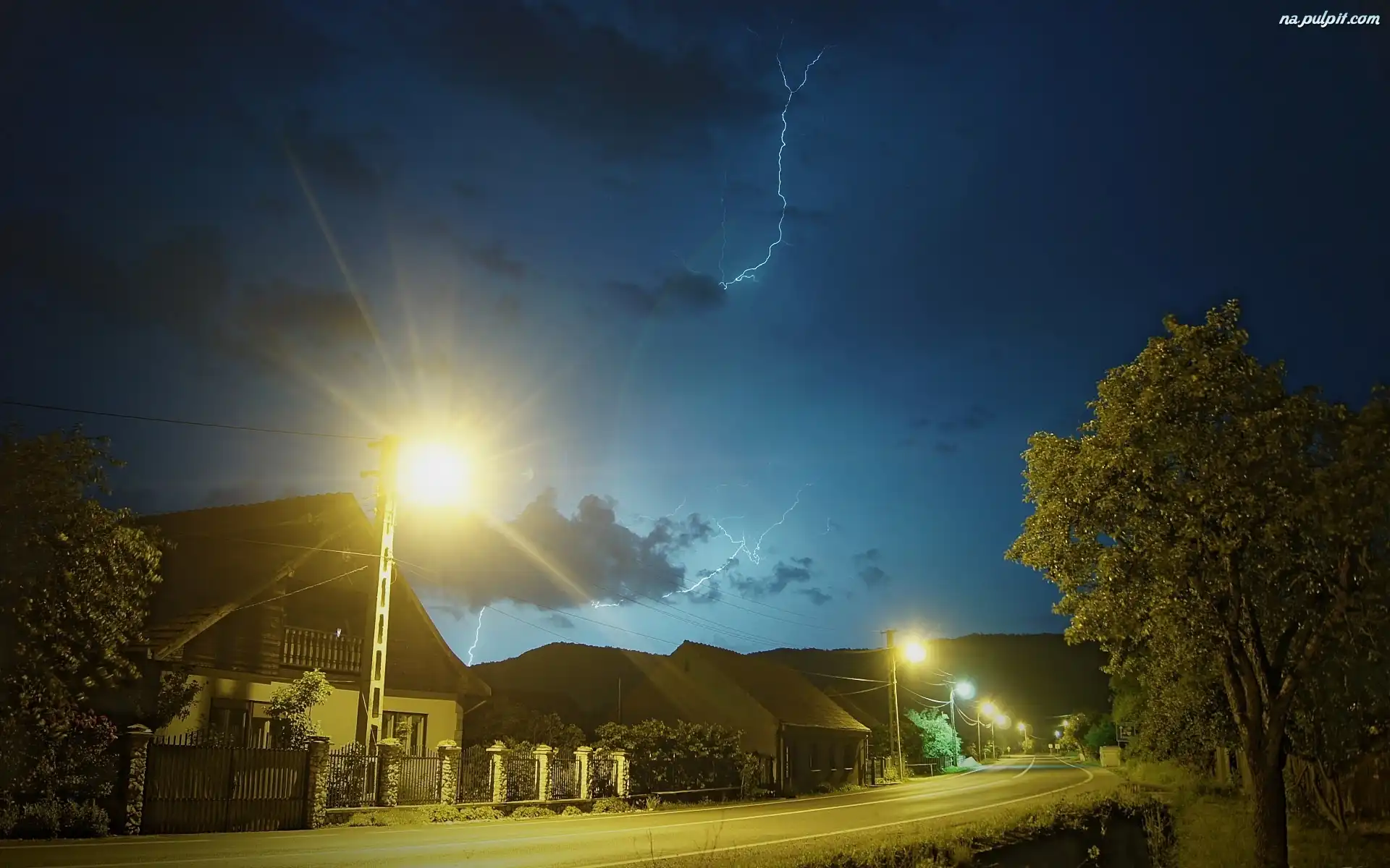 Lamp, Noc, Domy, Droga, Światła Na Pulpit
