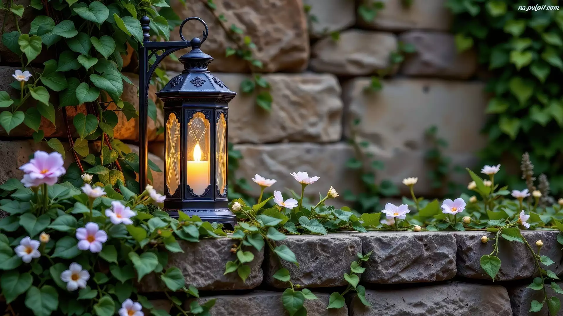 Kwiaty, Murowana, Ściana, Lampa, Biało-różowe Na Pulpit