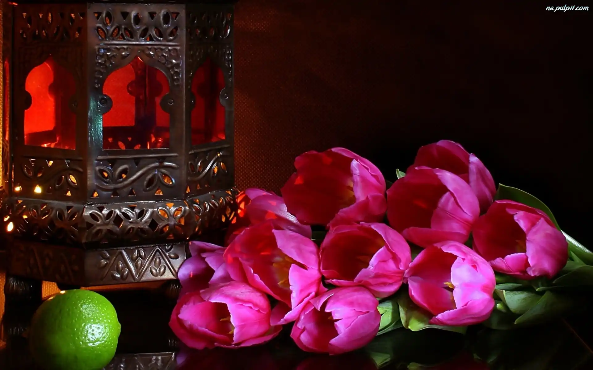 Lampa, Różowe, Tulipany, Zielona, Stara, Cytryna Na Pulpit