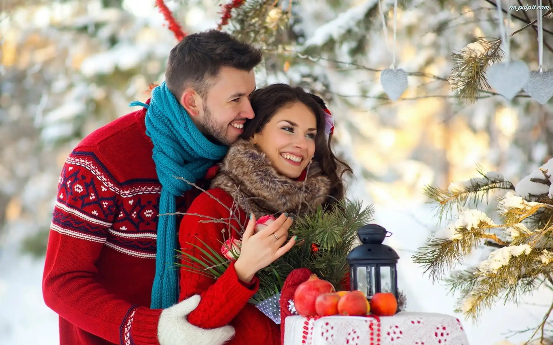 Lampion, Choinka, Para, Radosna, Serduszka Na Pulpit