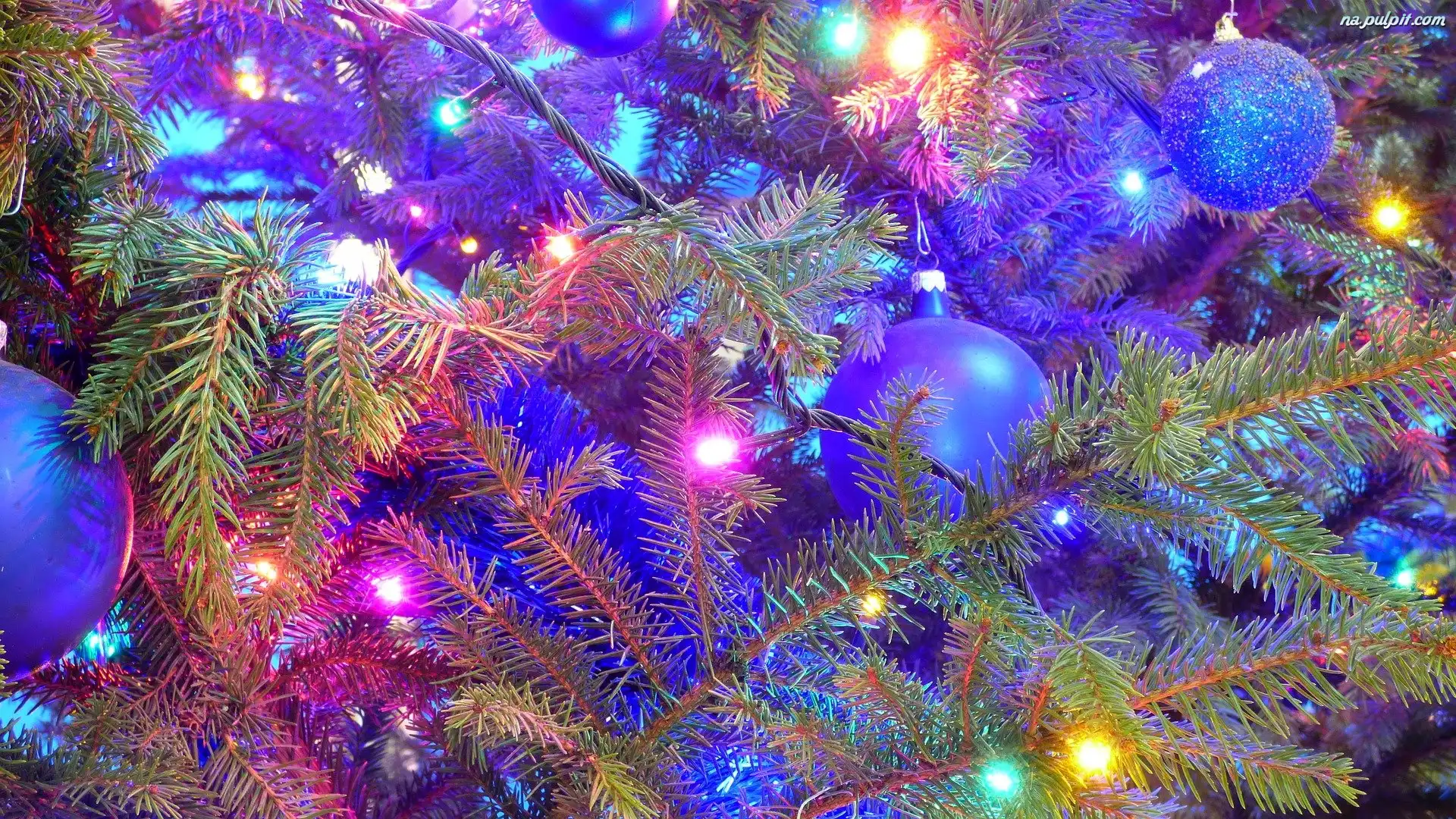 Gałązki, Lampki, Boże Narodzenie, Świerk, Choinka, Bombki