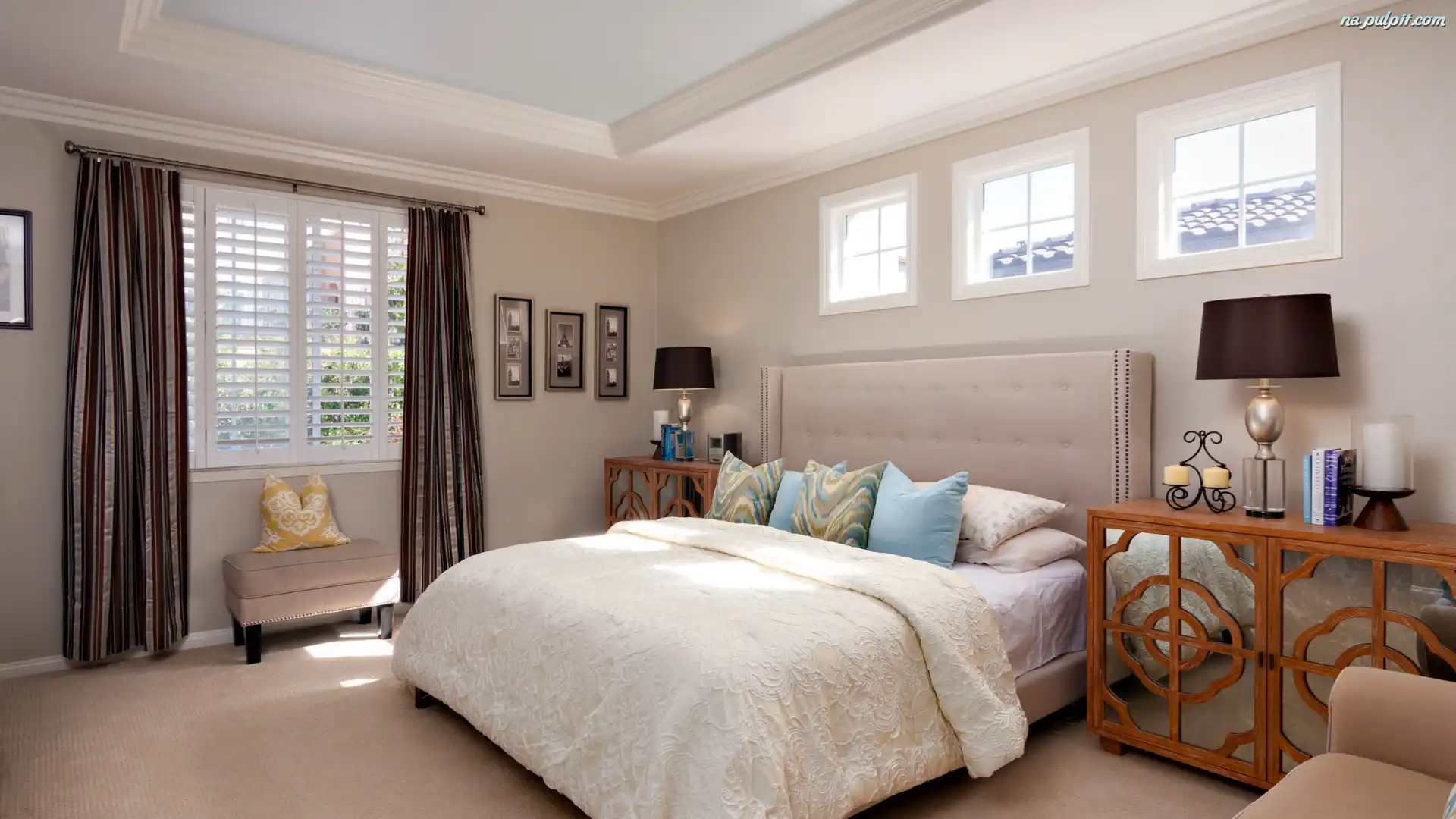 Lampy, Sypialnia, Beżowa, Komody Na Pulpit