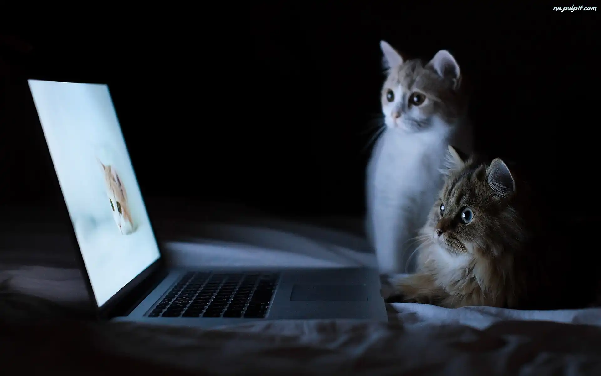 Laptop, Słodkie, Dwa, Kotki Na Pulpit