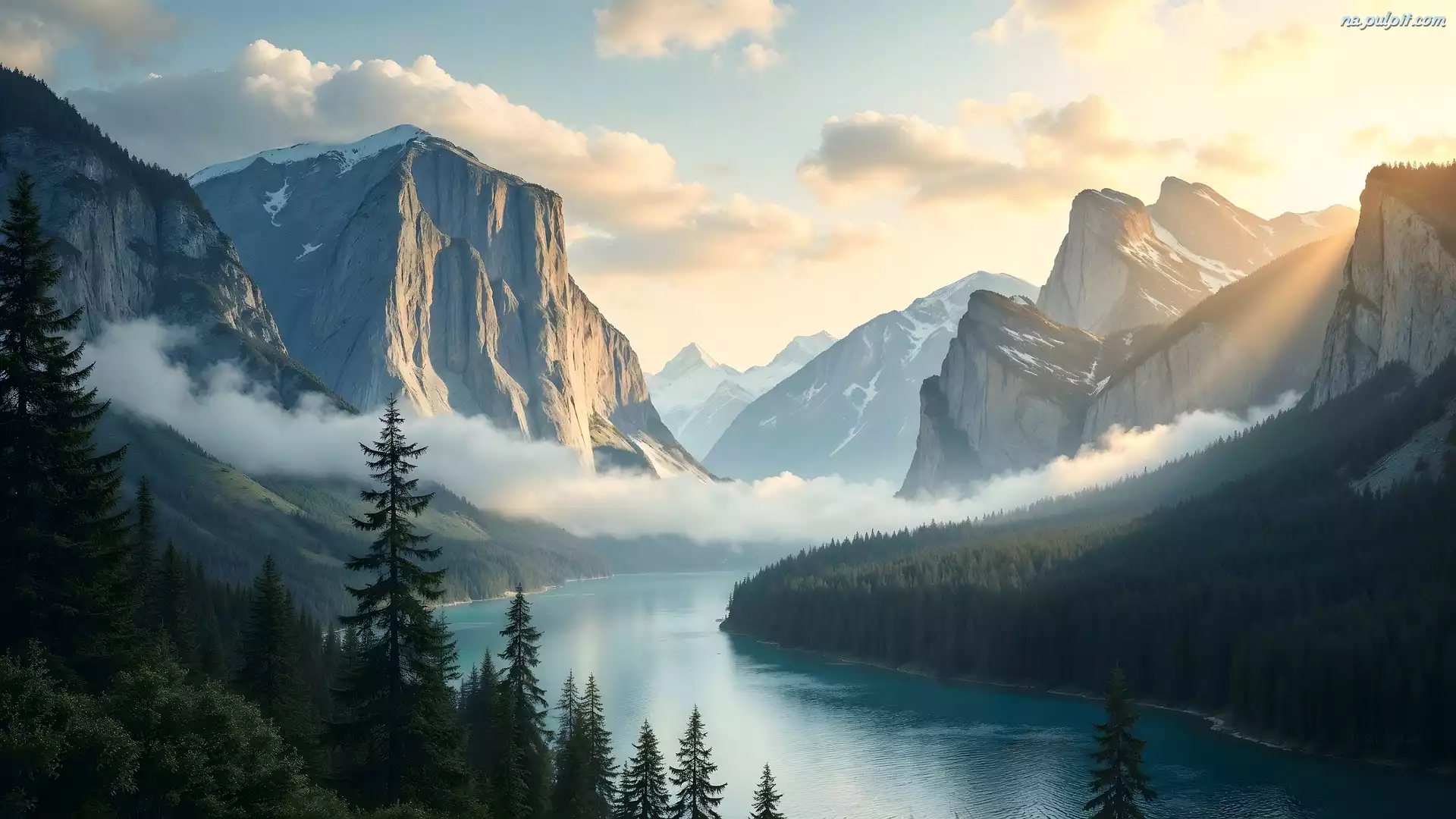 Mgła, Góry, Drzewa, Las, Rzeka, AI Na Pulpit