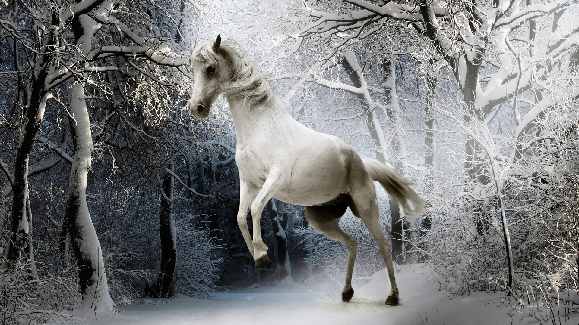 Las, Koń, Biały, Zima Na Pulpit