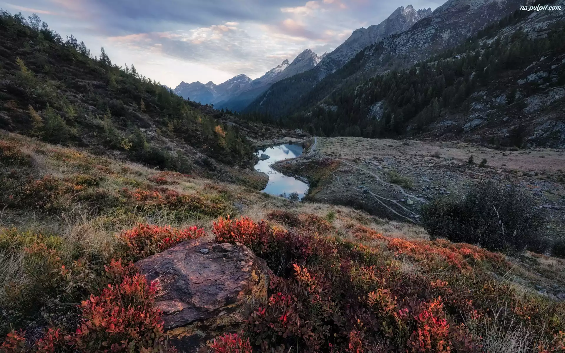 Roślinność, Góry, Drzewa, Las, Jezioro, Chmury Na Pulpit