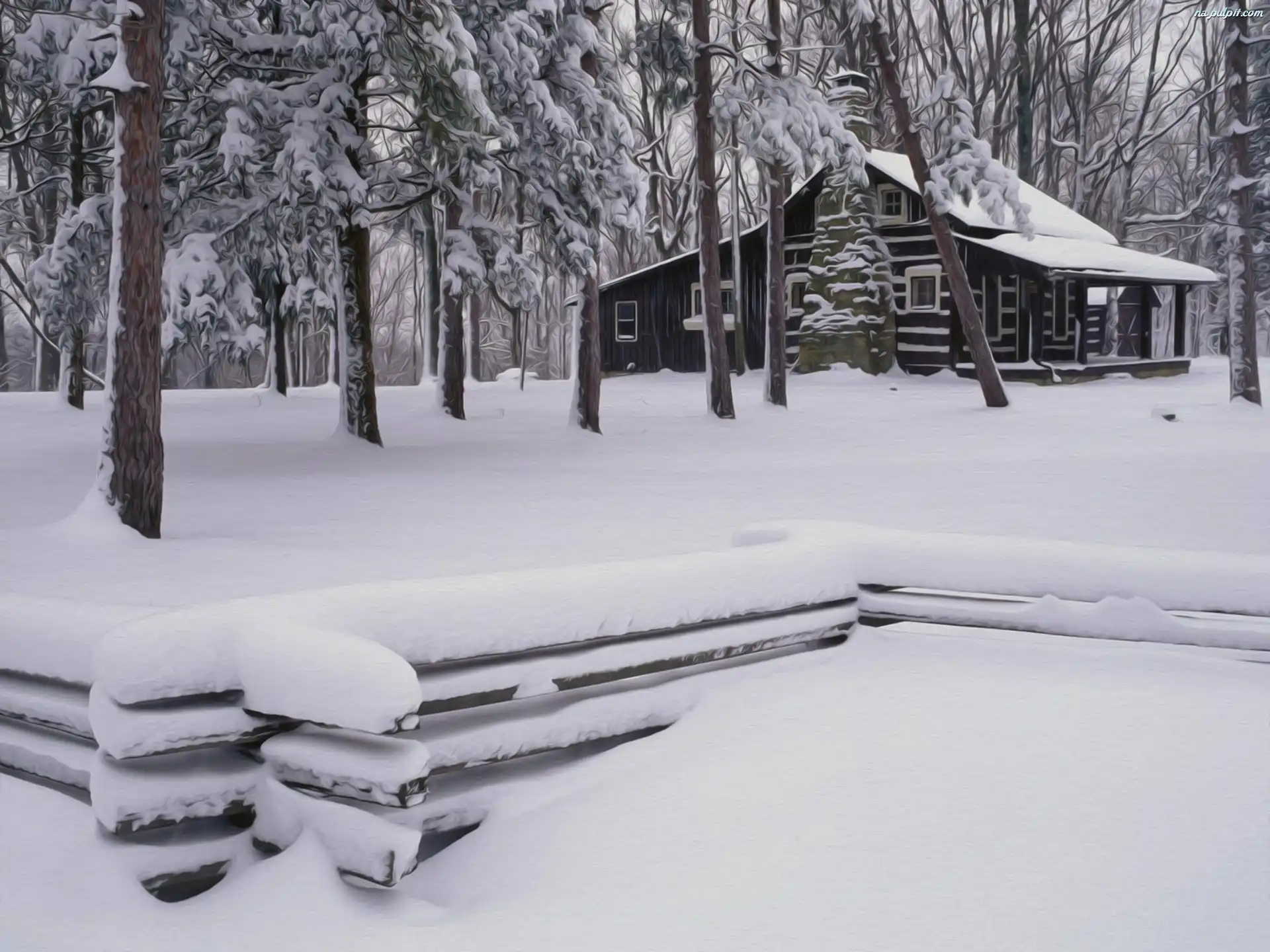 Åšniegiem, Dom, Drewniany, Las, Pokryte Na Pulpit