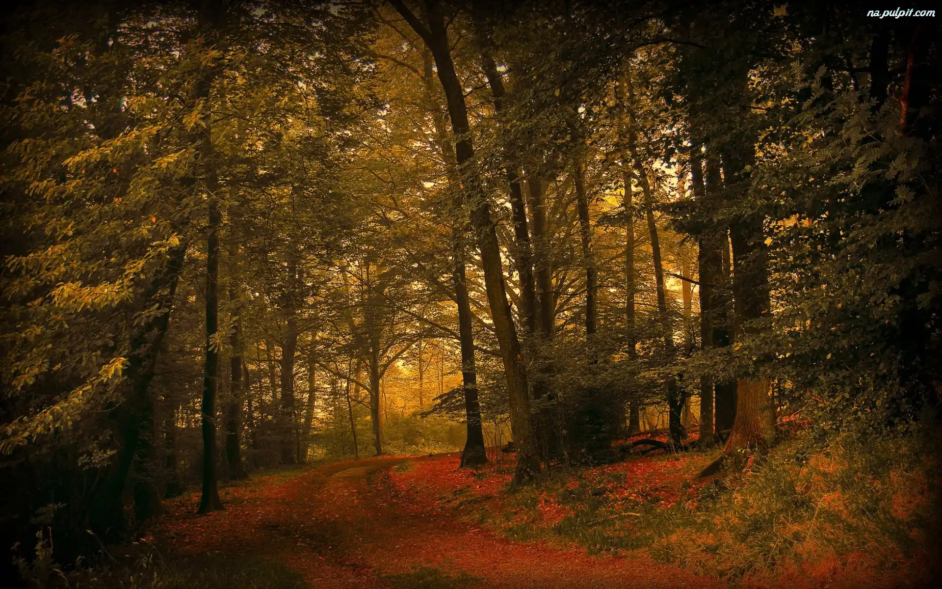 Droga, Las, Liście Na Pulpit