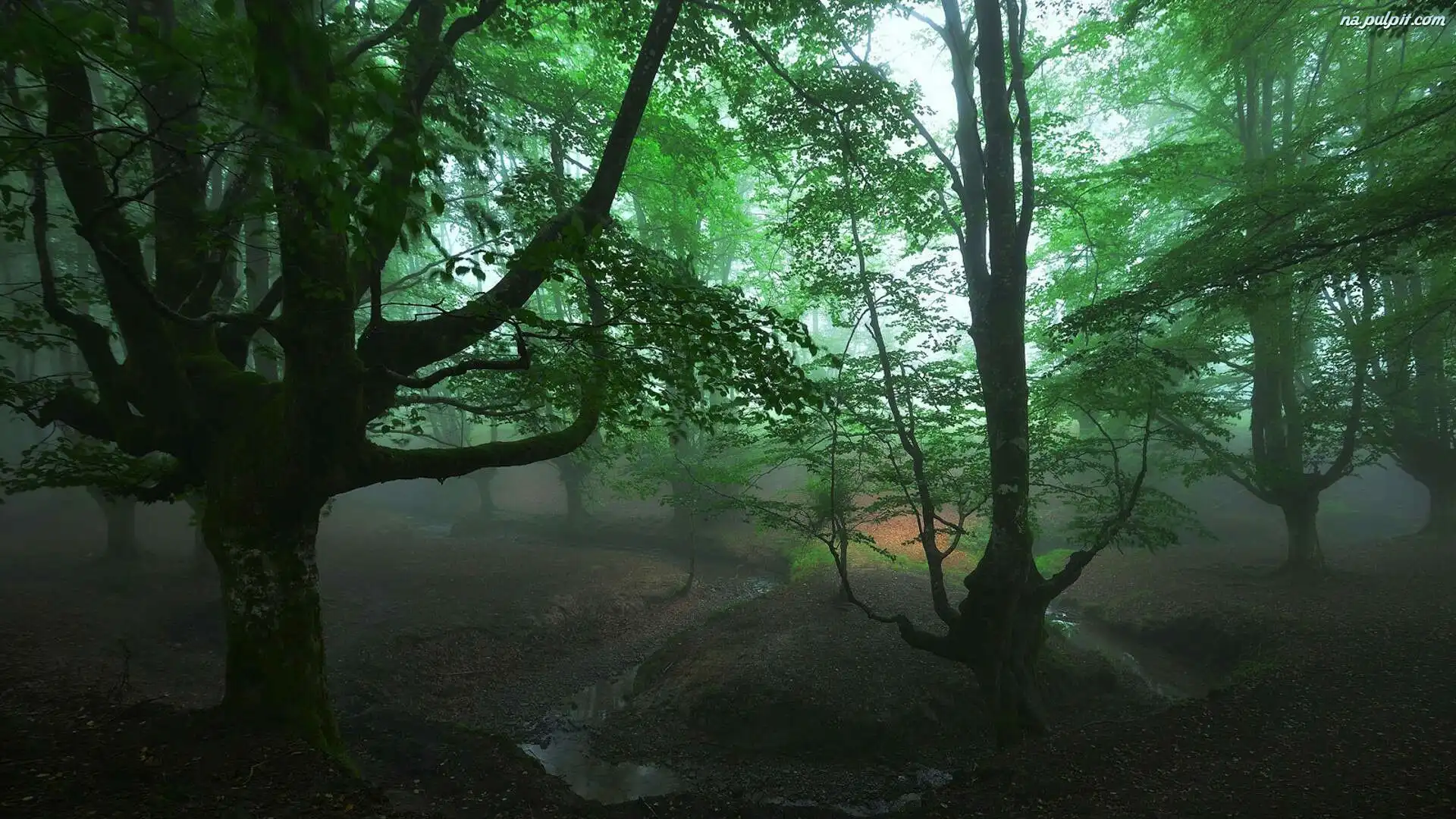 Kraj Basków, Drzewa, Mgła, Park Narodowy Gorbea, Hiszpania, Las Na Pulpit
