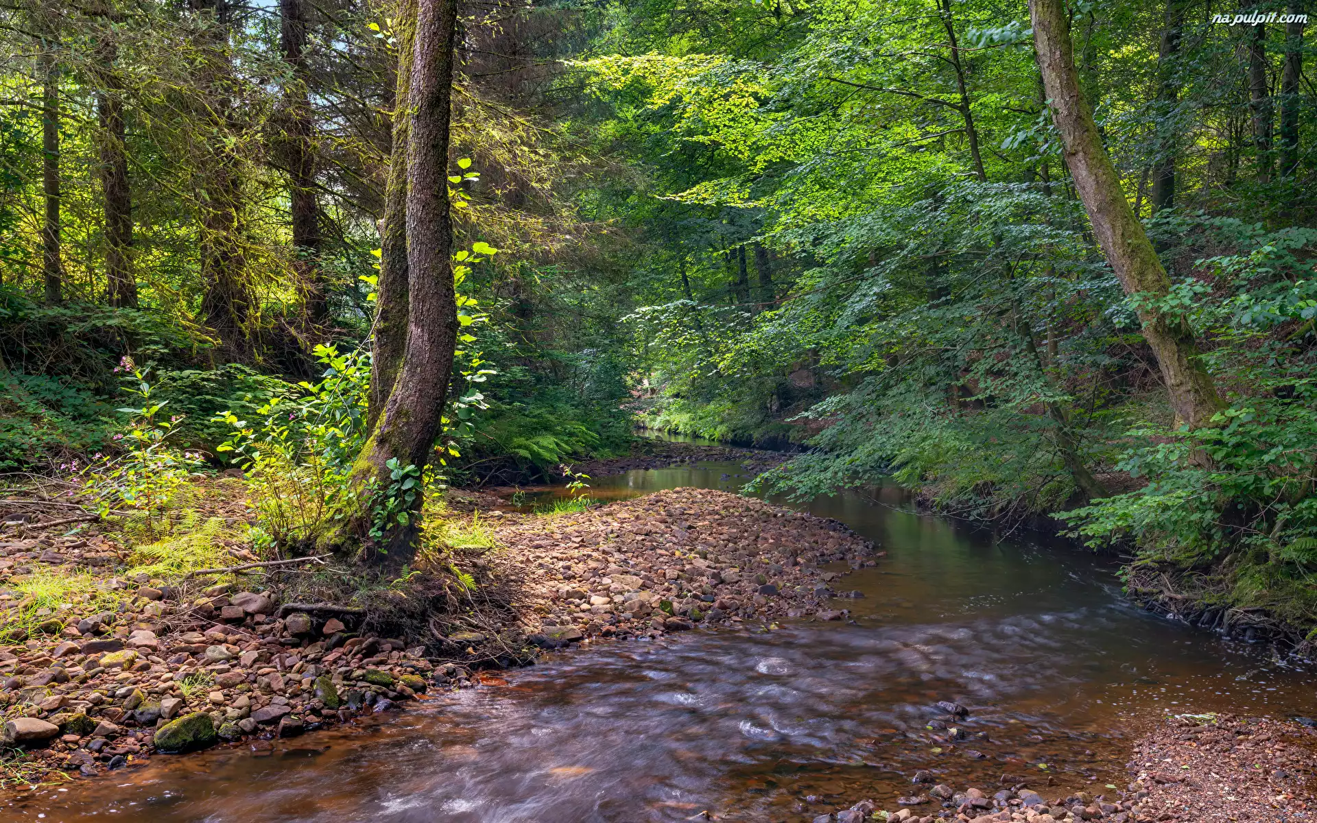 Rzeka, Las, Drzewa, Kamień, Potok Na Pulpit