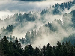 Drzewa, Mgła, Zamglony, Las