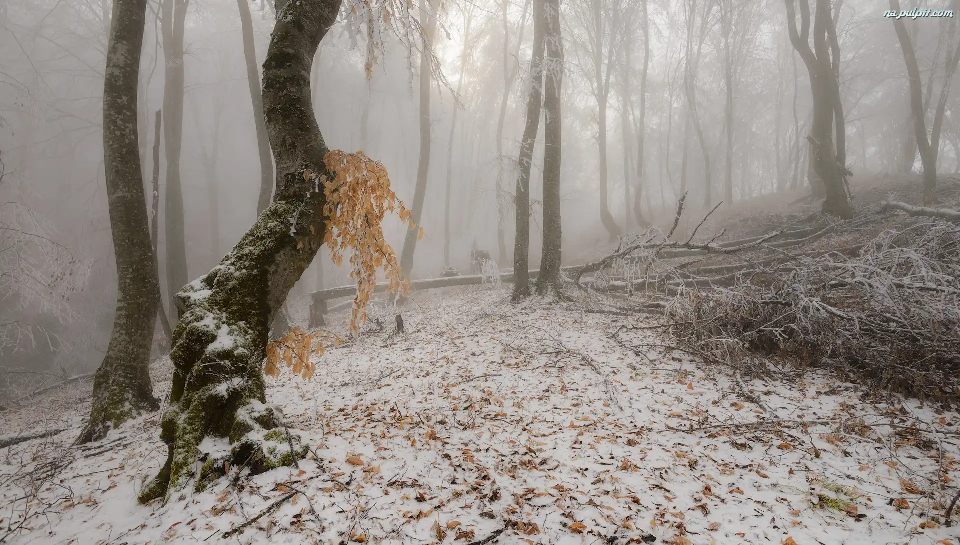 Drzewo, Las, Przewrócone, Mgła, Drzewa, Zima, Liście Na Pulpit