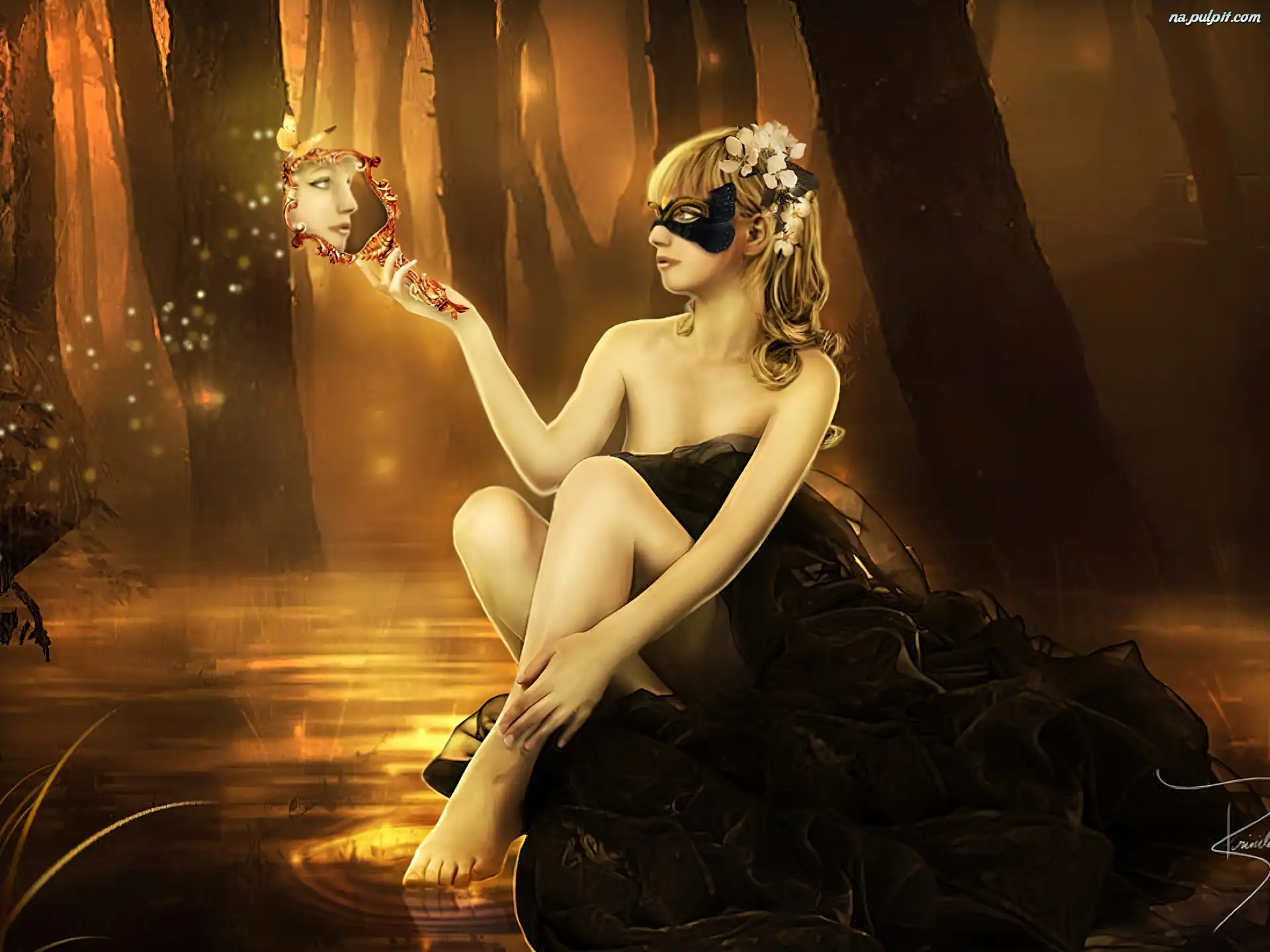 Las, Maska, Dziewczyna, Lustro Na Pulpit