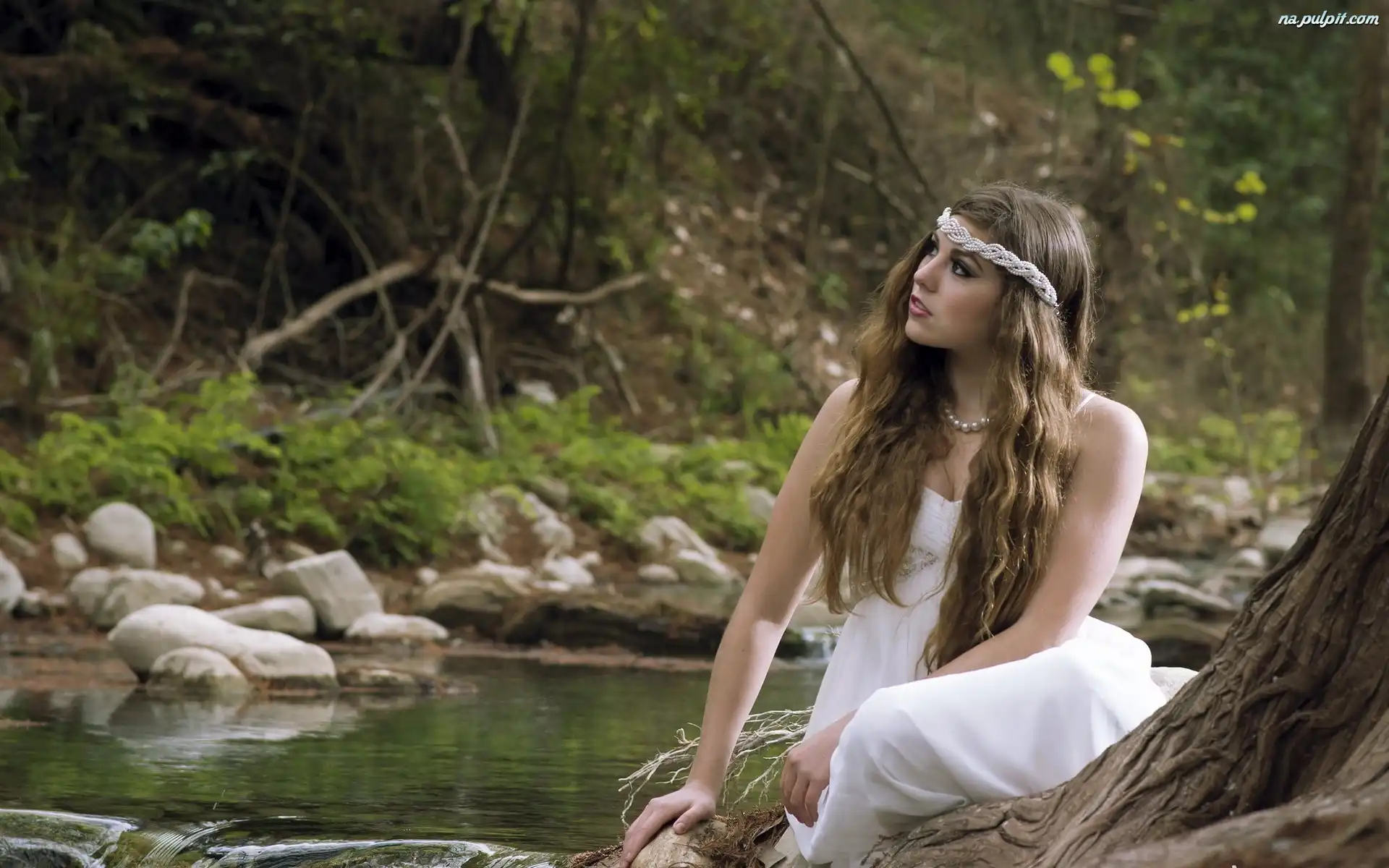 Las, Górski, Strumień, Dziewczyna, Kamienie Na Pulpit