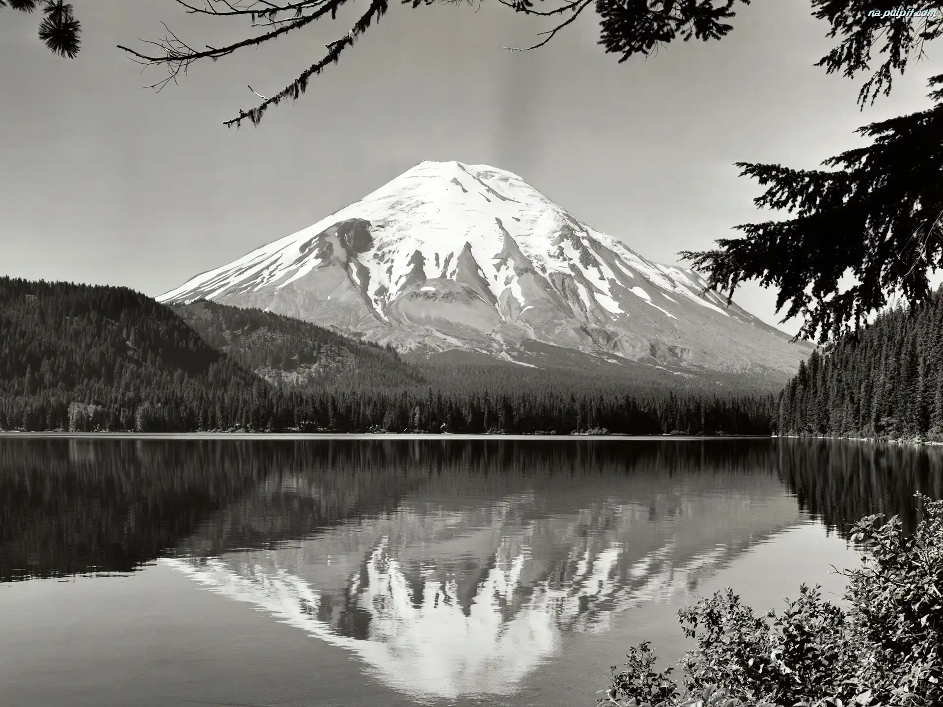 Las, Śnieg, Góra, Jezioro Na Pulpit