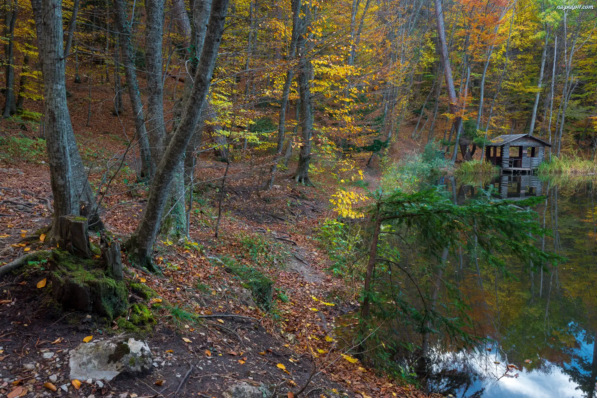 Las, Jezioro, Altanka, Drzewa, Jesień, Liście Na Pulpit
