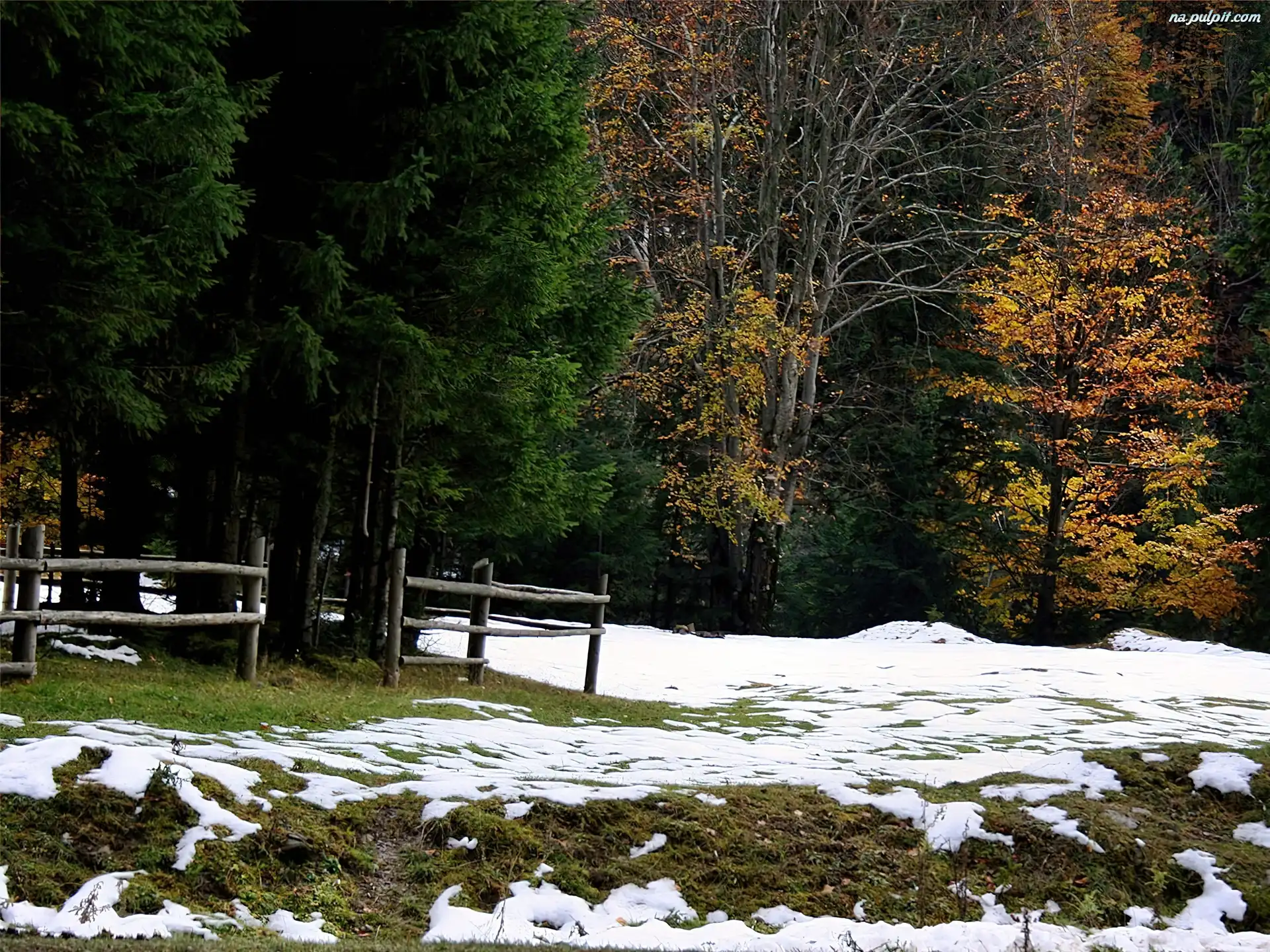 Śnieg, Jesień, Las, Pierwszy Na Pulpit