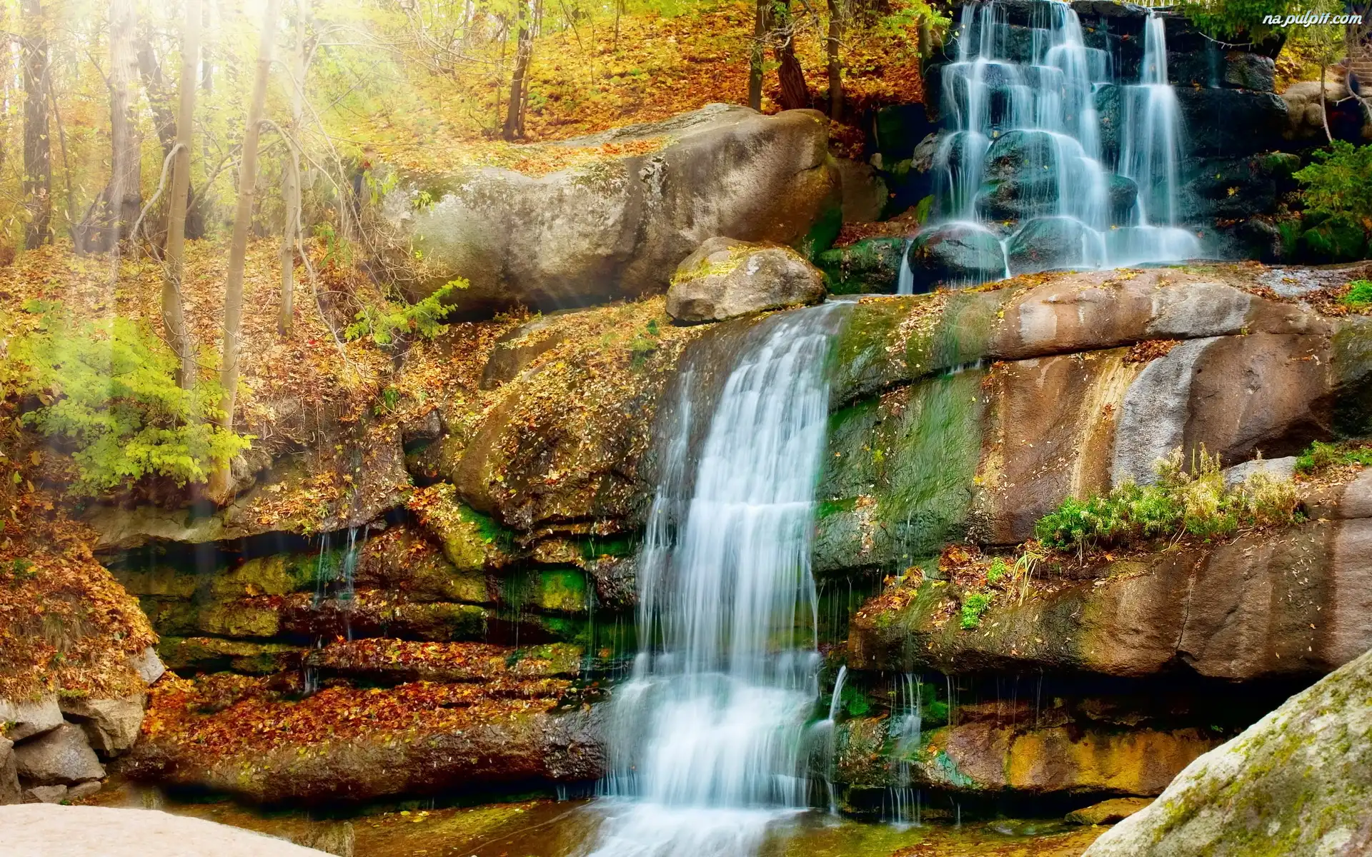 Jesień, Las, Wodospad Na Pulpit