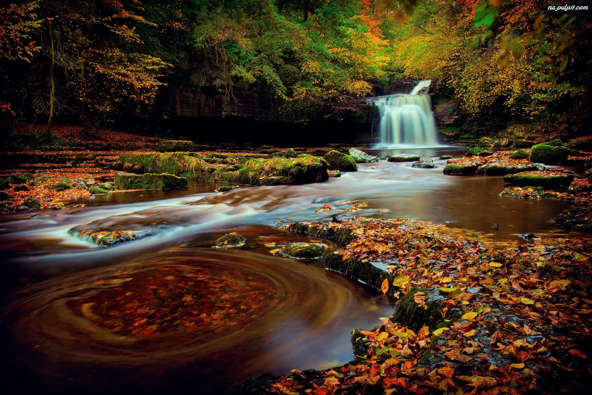Jesień, Las, Wodospad Na Pulpit
