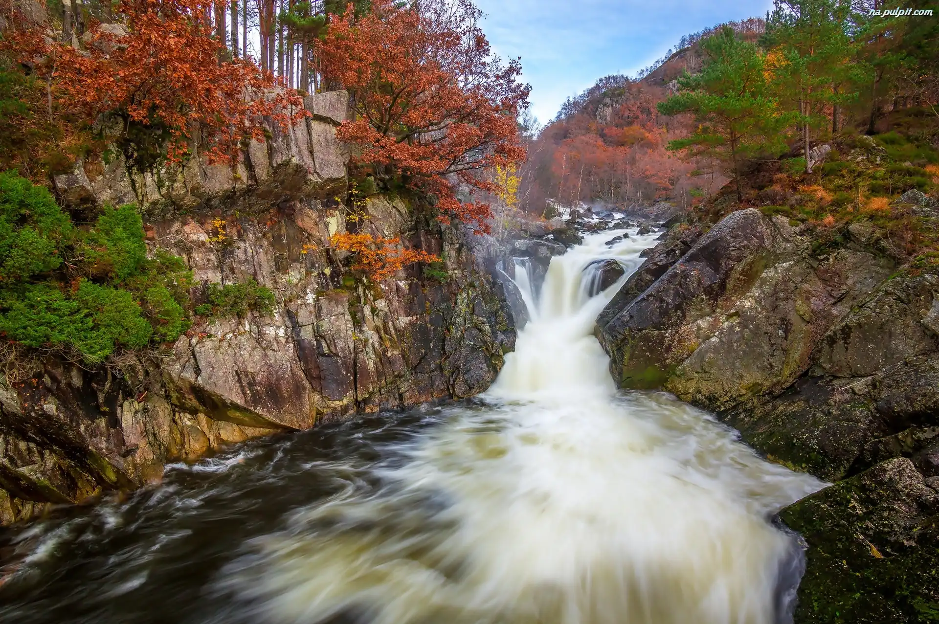 Las, Wodospad, Jesień, Skały Na Pulpit