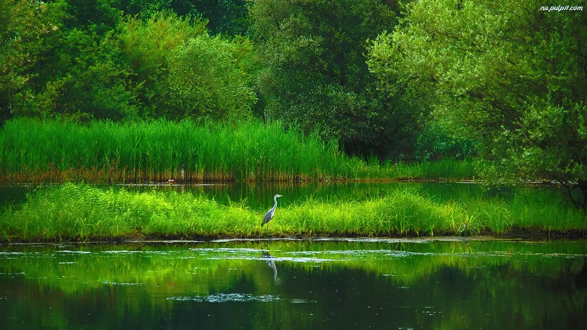 Las, Szuwary, Jezioro, Czapla Na Pulpit
