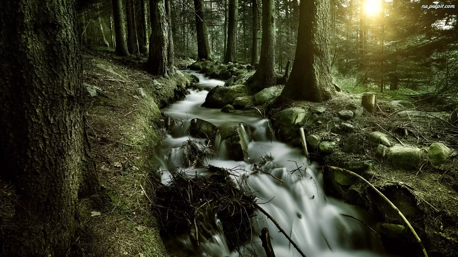 Światło, Kamienie, Rzeczka, Las, Przebijające Na Pulpit