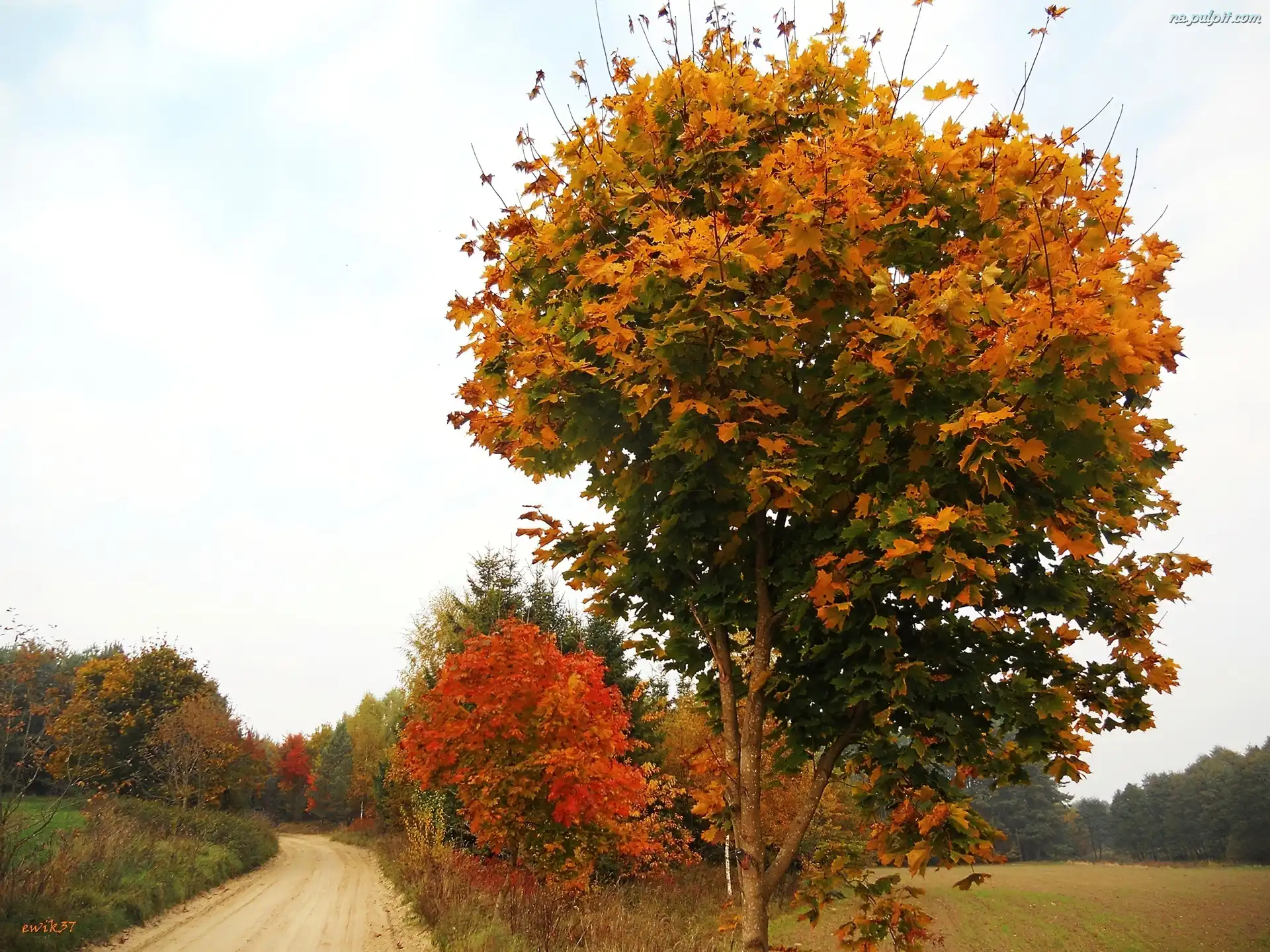 Las, Droga, Drzewo, Klonowe, Pole Na Pulpit