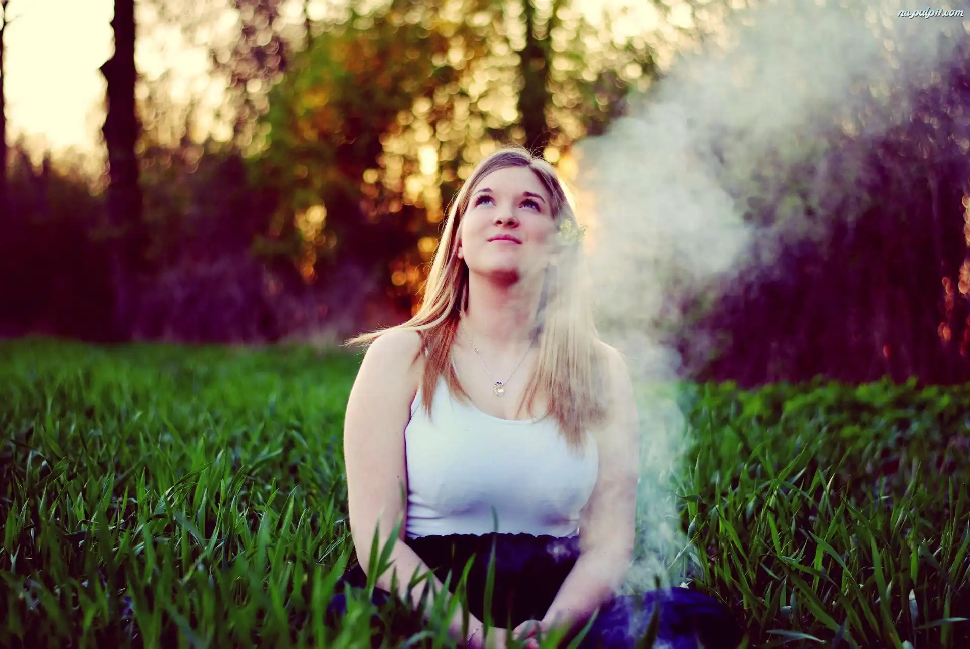 Las, Blondynka, Kobieta, Dym Na Pulpit