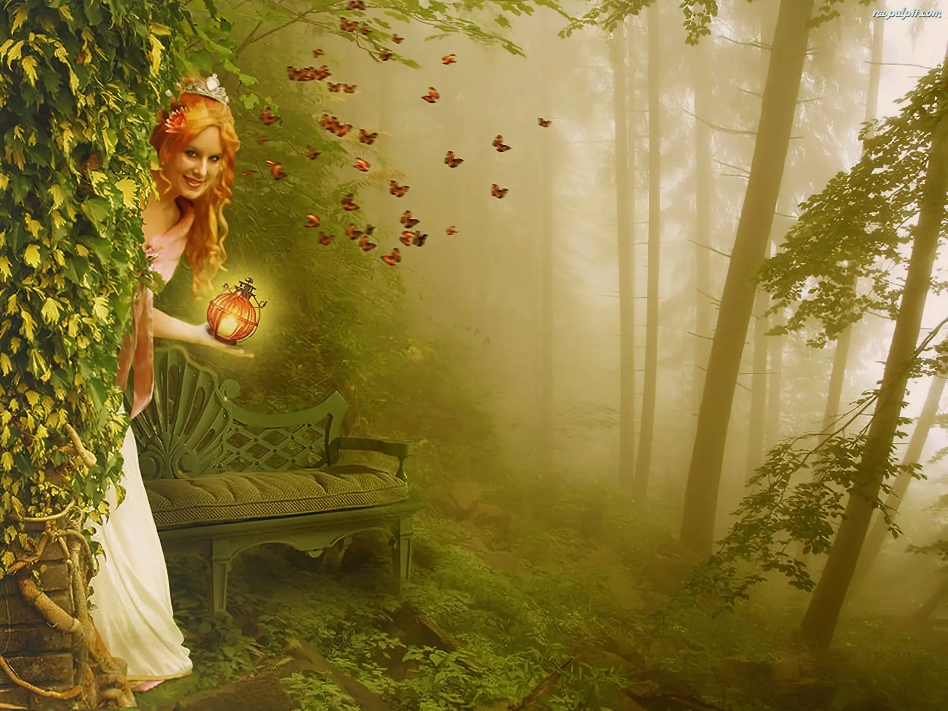 Las, Motyle, Kobieta, Ławka Na Pulpit