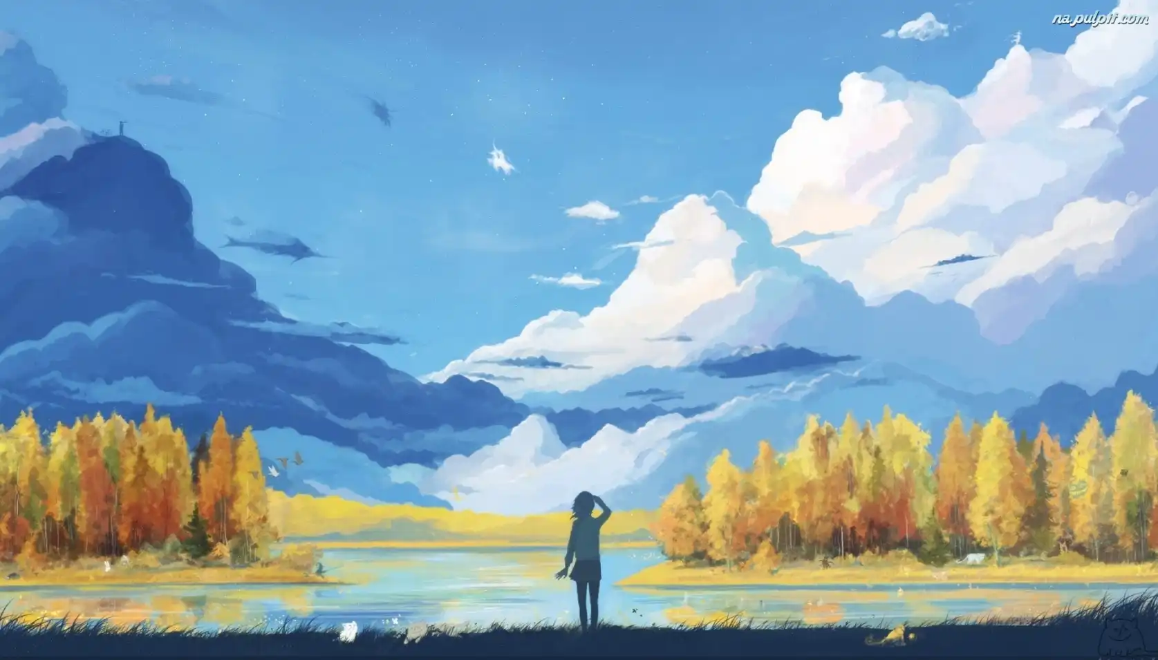 Las, Pejzaż, Kobieta, Jezioro Na Pulpit