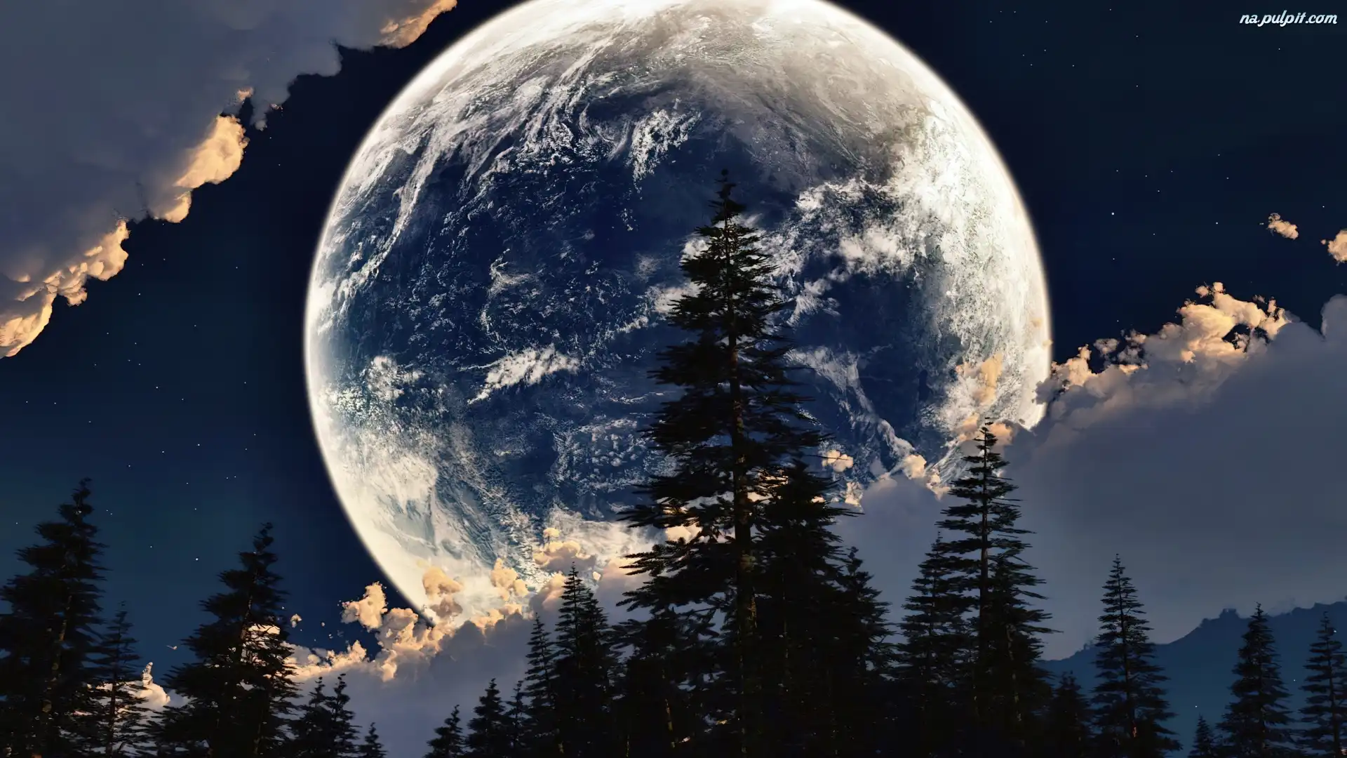 Księżyc, Las, Chmury Na Pulpit