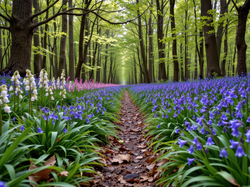 Las, Wiosna, Fioletowe, Różowe, Dzwonki, Białe, Kwiaty, Drzewa, Ścieżka