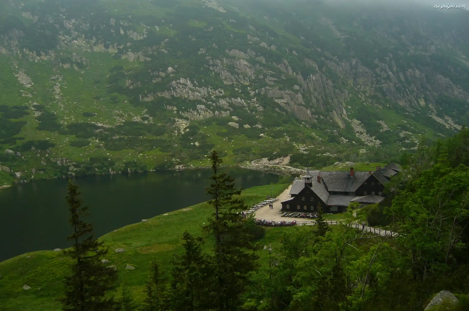 Las, Skała, Góry, Lato, Jezioro Na Pulpit